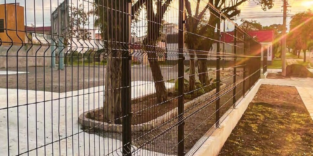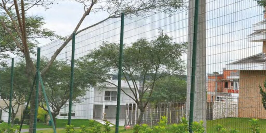 Rodogradil Antiofuscante: arame galvanizado a quente com dupla camada protetora, postes robustos e acessórios que garantem longa vida útil, segurança e privacidade, atendendo às normas técnicas.